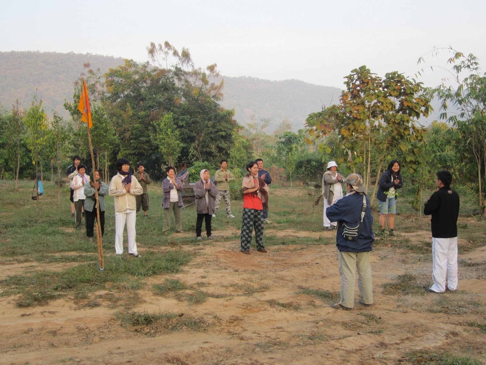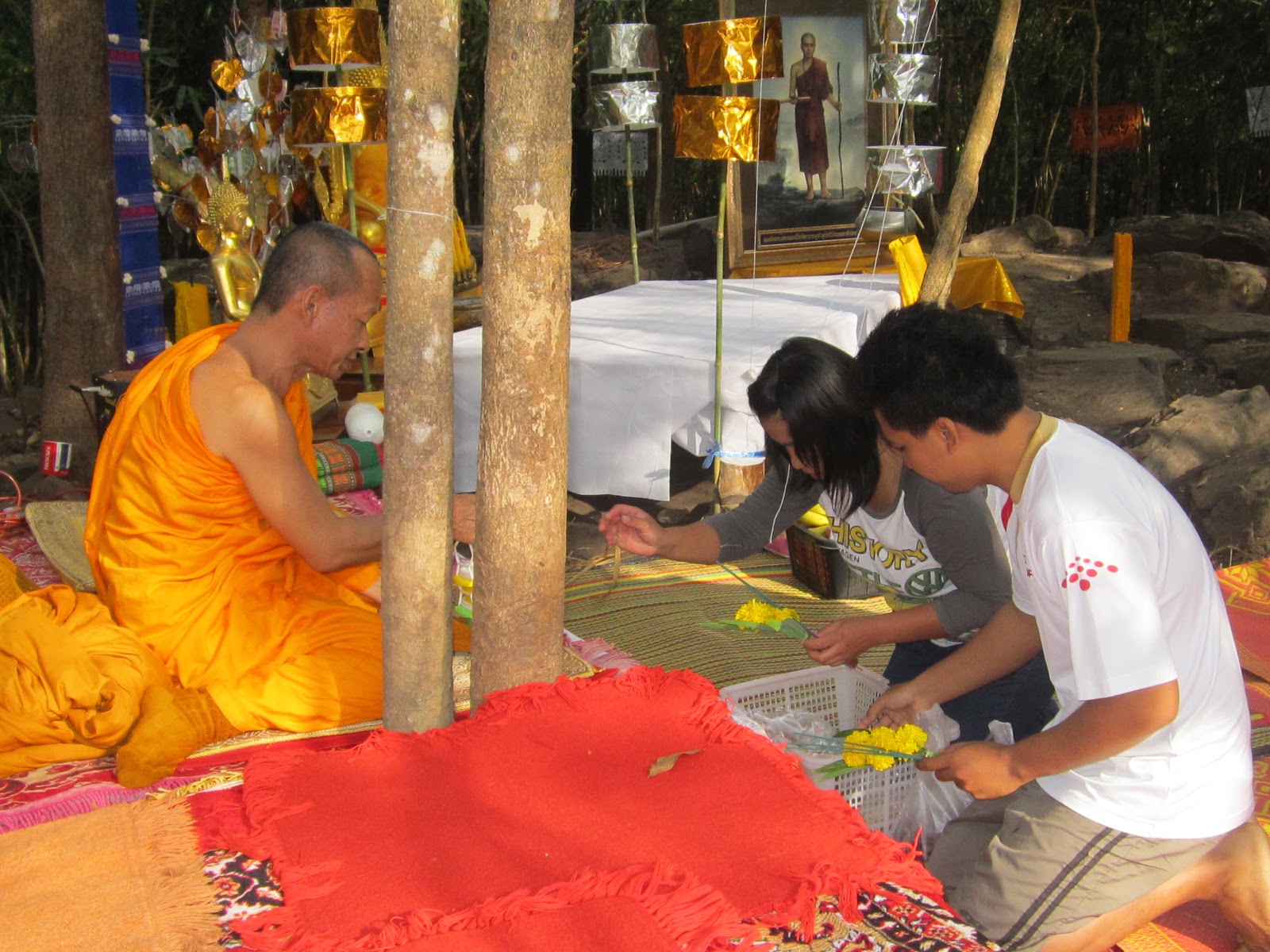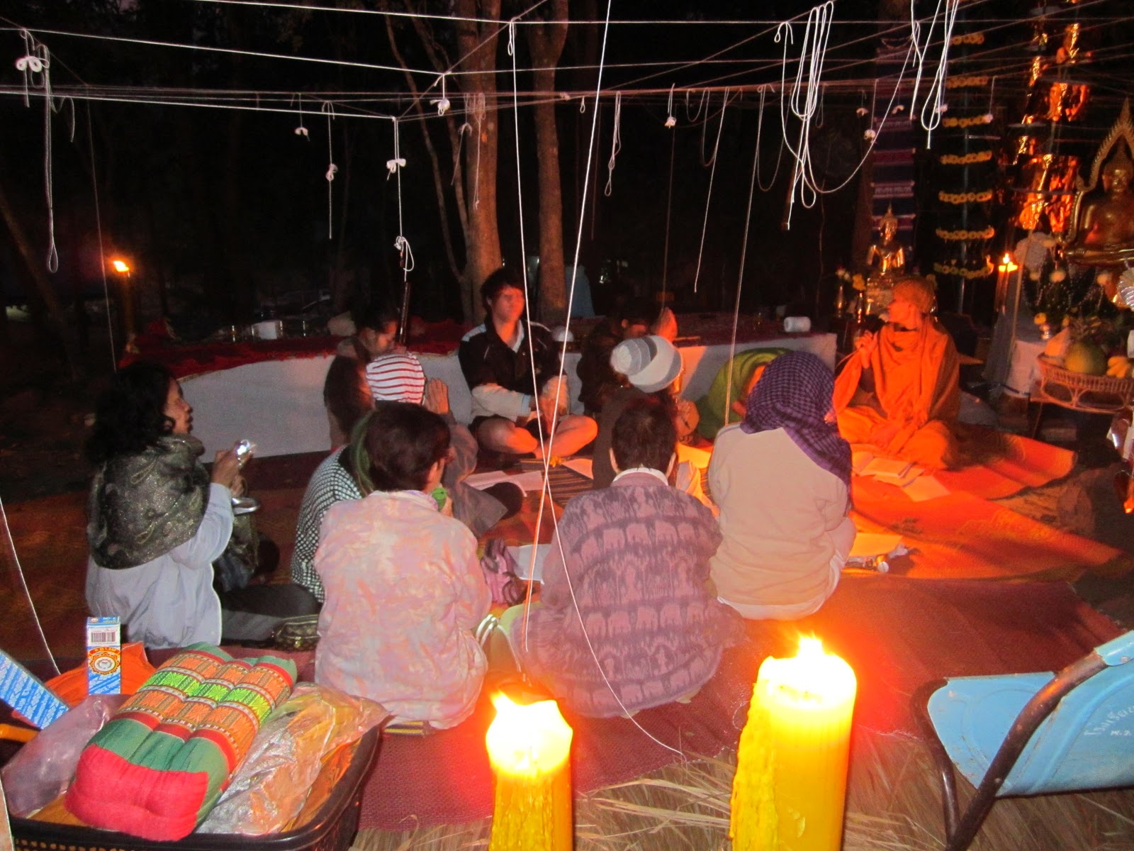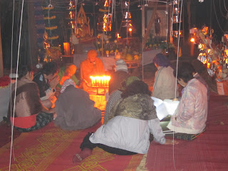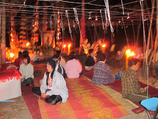 กลางคืนวันที่ 24 ธันวาคมตื่นเต้นที่สุดเลยเพราะเราจะไปไหว้ครูบรรพครูสุวรรณโคมคำ มี สมเด็จศรีศรัทธา ฯ เป็นต้น เพราะเกิดมาเพิ่งเคยปฏิบัติธรรมเป็นครั้งแรกในชีวิต เพราะคณาจารย์ของ ชมรมศิษย์สุวรรณโคมคำ ว่าต้องเตรียมสำภาระเช่น ไฟฉาย,เต้น,ยากันยุง,ผ้าห่มกันหนาว แต่ผ้าห่มตาหมีไม่มี เพราะที่พิษณุโลกหนาวมากๆ เห็นคณาจารย์ว่า อย่างนั้น ผู้เขียนก็จินตนาการไปถึง นิวซีแลนด์ เลย อิอิ ล้อเล่น แต่ก็เชื่อเหล่าครูบาอาจารย์เขาคงไม่หลอกเรา แน่ เราก็เตรียมข้าวของไปแบบ พะรุงพะรัง เลยน๊ะ เขาก็แชวกันใหญ่ว่าบ้าหอบฟาง คิคิ แต่ธรรมดาพี่ๆ ครูบาอาจารย์มีความอนุเคราะห์มากอบอุ่นมาก ไปด้วยรถตู้ 3 คัน รวมทั้ง หมด 32 คน แล้วขับรถตามไปอีก 1 คัน เราจะเอารถไปก็กะไรอยู่ เพราะน้ำมัน แพงมาก ไปถึงสำนักสงฆ์ศรีสุวรรณโคมคำแล้วประมาณ ตี 4 กว่าๆ พอไปถึงก็ลงจากรถได้สำผัสพลังแห่งความหนาวเหน็บขึ้นมาทันควัน พอไปถึงก็เหมือนผึ่งแตกรัง ห้องน้ำอยู่หนาย ฮ่า ก็มึนไปหมดว่าจะไปมุมใหนของสำนักสงฆ์ก่อนดี เสียงมาจาก โบสถ์โบราณว่่า ยินดีต้อนรับ นั้นเป็นเสียงของครูบาพี่ วสันต์ ก็เดินนำทางขึ้นไปกุฏิ ก็สนทนากันจนเช้า ครูแพมก็เรียกไปเจริญสมาธิกันเลยเอาล่ะหว่า เพิ่งมาปฏิบัติกันเลยเหรอเนี่ย เหนี่อยมากทำไงดีแกล้งไปอาบน้ำแล้วดีกว่า เช้านั้นก็ไม่ได้ไปปฏิบัติอะไรเพราะแอบไปนอนเพราะมันหนาวมาก มาปฏิบัติอะไรตอนนี้ เล่า พอตกเช้าก็ตื่นขึ้นมางัวเงีย ล้างหน้าล้างตาพอสมควรเพราะ พิษณุโลกทำไมมันหนาวขนาดนี้ เห็นครูบาพี่ ท่านบอกว่าบำเพ็ญตะบะให้แก่กล้า แต่ครูบาพี่ก็คลุมผ้าห่มทั้งตัวเลยเหมือนกัน แฮะ ไม่อยากแซว อิิอิ ครูบาพี่วสันต์เลยชวนไปจัดสถานที่ที่จะจัดงานตอนบ่ายจะมีการพุทธาภิเษก พระพุทธเจ้าเปิดโลกก็ไปช่วยครูบาพี่ และ ครูบามหาจุ้ย สักระยะพอสายๆ ก็เริ่มอบอุ่นอาบน้ำได้ ก็เตรียมตัวเข้าพิธีพุทธาภิเษก พระพุทธเจ้าเปิดโลก ตอนแรกมีครูบาพี่ 4 รูป แต่ท่านบอกว่า จะมาอีก 6 รูป เป็น 9 รูป โห พอเข้าพิธีช่วงประมาณบ่าย 2 แดดเริ่มร้อนมาก พอสวดพุทธมนต์อะไรไม่รู้แหล่ะ แล้วสวด อิติปิโส 108 ก็นานมาก เหน็บไปทั้งตัวจะขยับก็ไม่ได้เพราะนั่งแถวหน้าเลยทำตีสนิทครูบาพี่ วสันต์สุดฤทธิ์เผื่อได้ของขลังกลับบ้านบ้าง พอสวดอิติปิโส 108 จบ แดดที่เคยร้อนกลับกลายเป็นว่าเย็นสบายเพราะอยู่ดีๆ แดดมันหายไปใหนเมฆมันคลุมให้ล่ะมั้ง โอ้คิดในใจ ที่นี่แรงจริงๆ พอพิธีเสร็จ ก็ร้อนเหมือนเดิมก็ไป พี่โมเช่ ก็ชวนกันไปขุดฝายกั้นน้ำเพื่อจะได้มีน้ำใช้ในหน้าร้อน พอตกกลางคืนก็สวดมนต์มนต์เย็นแล้วความ
