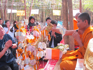 พระอาจารย์มหาจุ้ย รับเครื่องไทยธรรมจากบรรดาญาติโยม