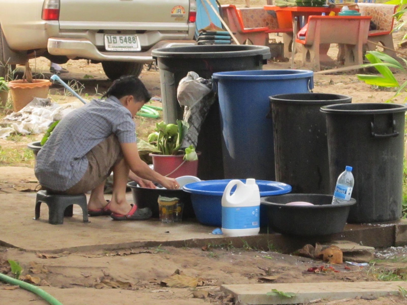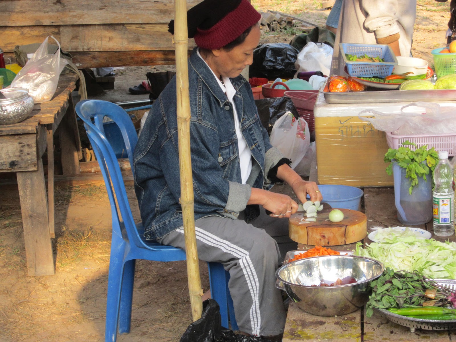 นานๆ ได้เห็นครูบัวบานนั่งหั่นผัก